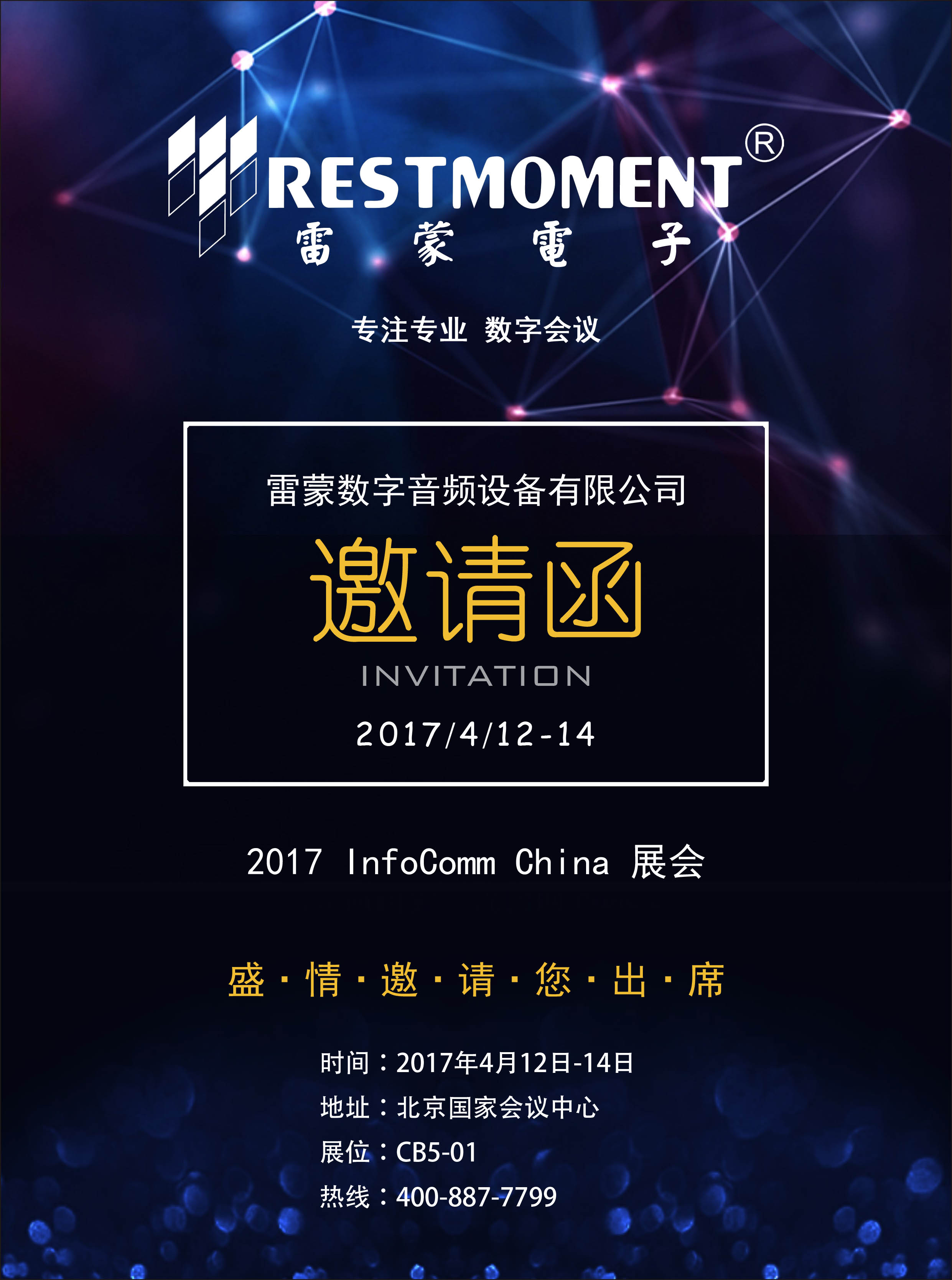 2017InfoComm China 展会将在北京国家会议中心拉开帷幕,2017年4月12日-14日雷蒙电子将携带备受瞩目的产品亮相展会,我们在北京国家会议中心展位CB5-01等待您的光临!